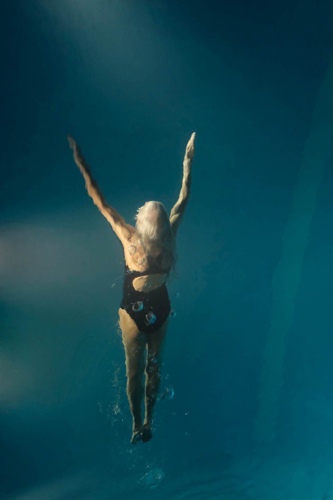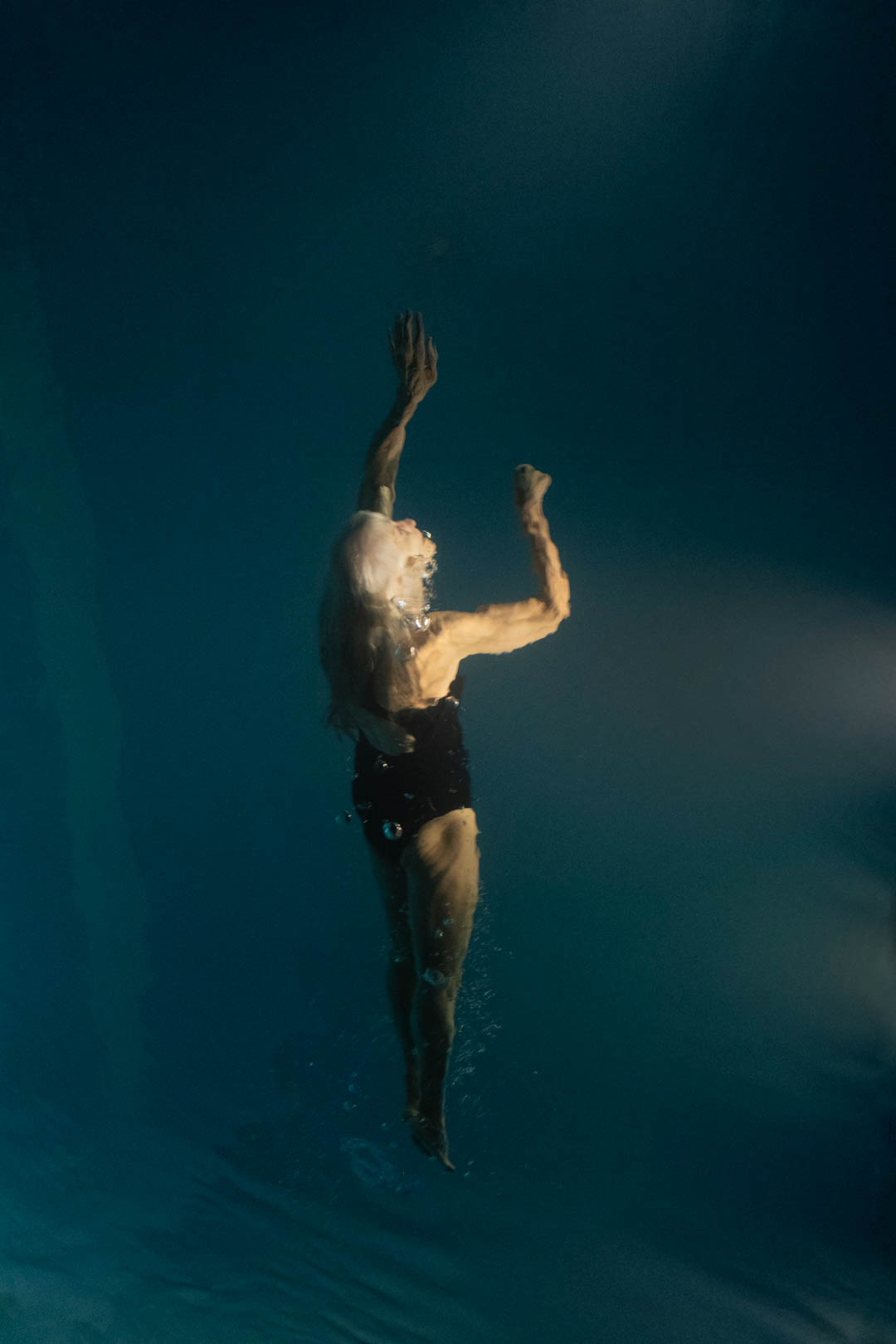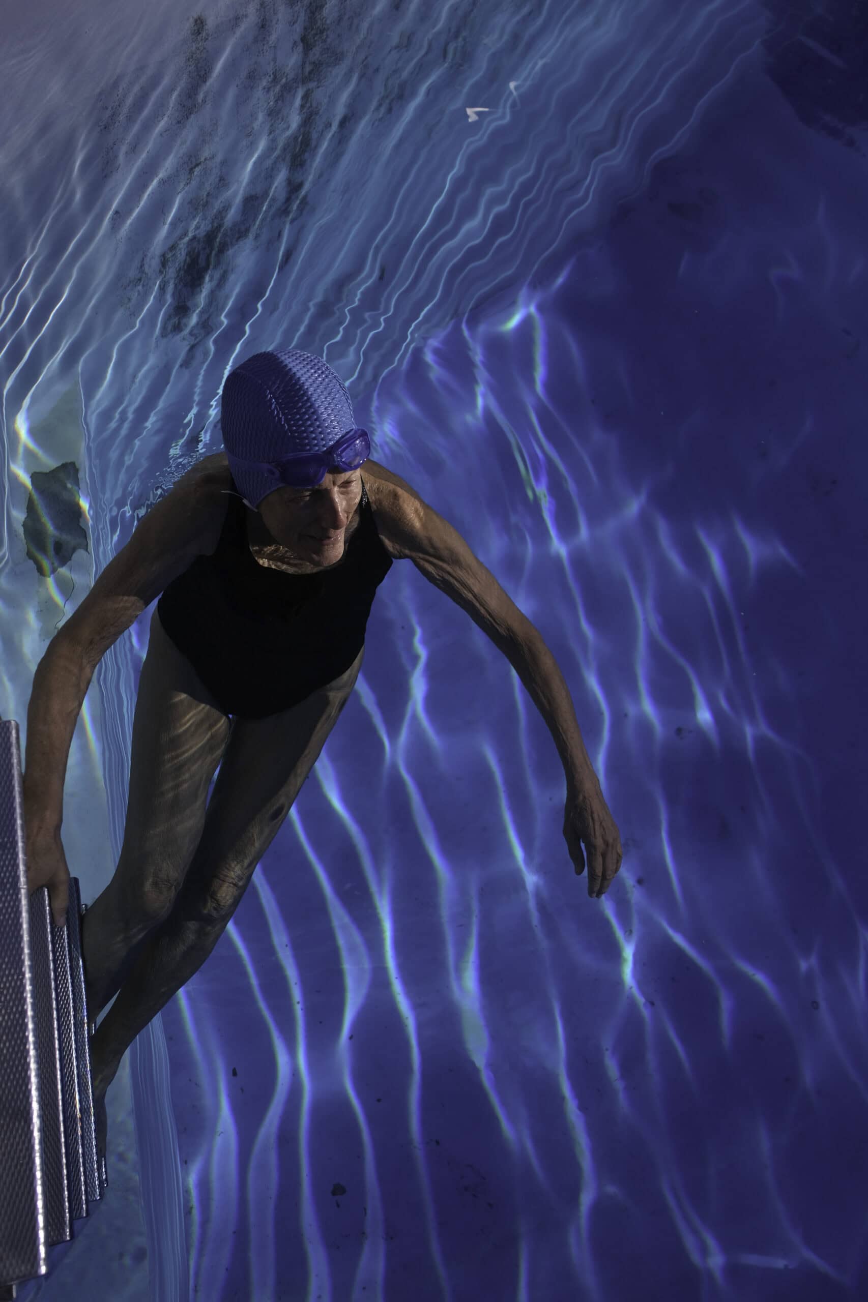 I tre år fotograferte jeg en liten gruppe morgenbadere i ulike Oslo-bad, og primært Frognerbadet. Utstillingen er en hyllest til de eldre og yngre som hver morgen, jevnt og trutt, besøker badene for å holde kropp og sjel i form, og samtidig får gleden av et sosialt felleskap. Stor inspirasjon og gode råd på veien er gitt av fotograf Hans Olav Forsang og Morten Krogvold.